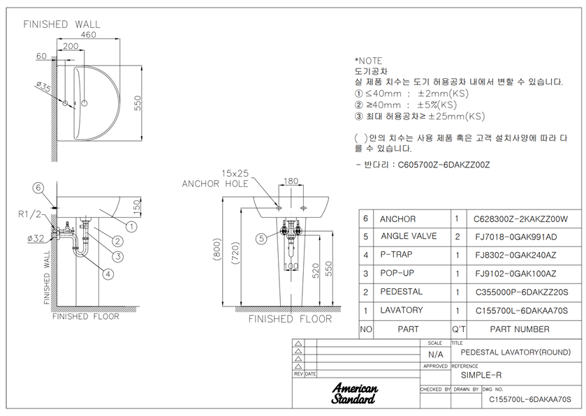 아메리칸 스탠다드 American Standard 세면기 세면대 화장실 호텔 긴다리세면기